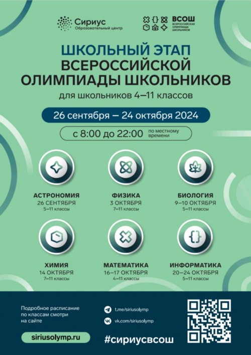 График проведения школьного этапа Всероссийской олимпиады школьников в 2024-2025 учебном году (скачать)