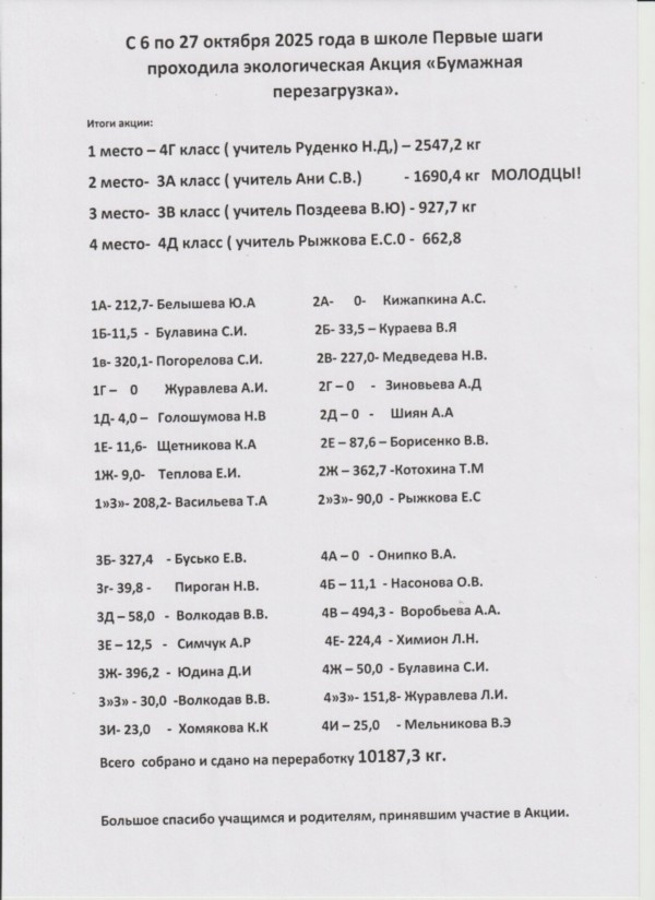 Подведены итоги акции "Бумажная перезагрузка - 2025" по сбору макулатуры.