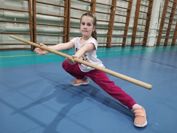 На занятиях дети учатся работать с мечом и шестом, которые помогают развивать координацию, точность движений, внимание.