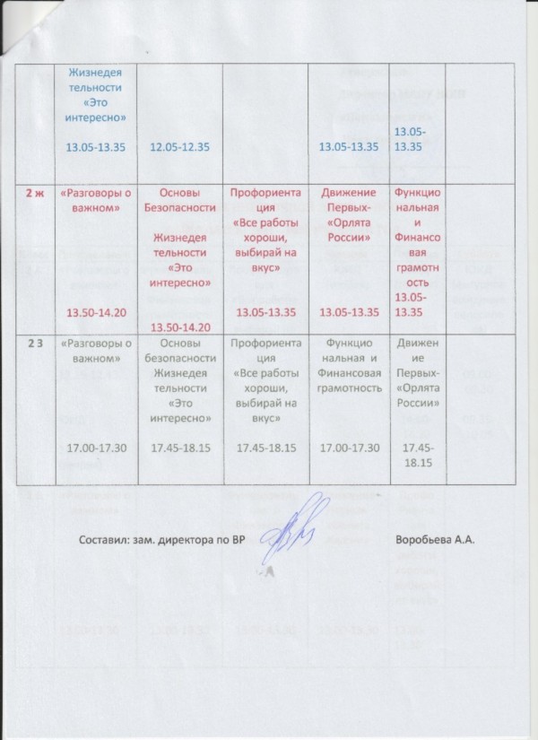 Расписание внеурочной деятельности для 2-х классов на 2025-2026 учебный год (скачать)