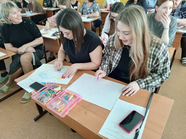 В конце заседания Хомякова К.К. провела для учителей занятие по арт-терапии. Для профилактики эмоционального выгорания.
